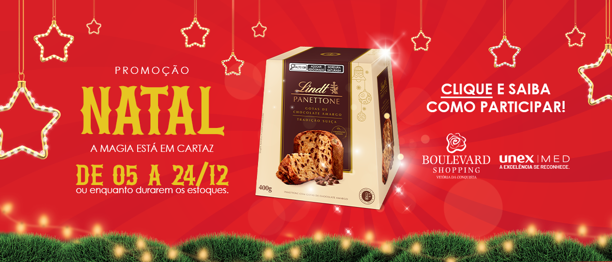 O Boulevard acaba de lançar uma promoção deliciosa para deixar a sua temporada natalina ainda mais doce. A partir de 5 de dezembro, quem realizar R$ 500 em compras* ganha um irresistível Panettone Gotas de Chocolate Lindt, daquele jeitinho suíço que derrete no coração e no paladar.